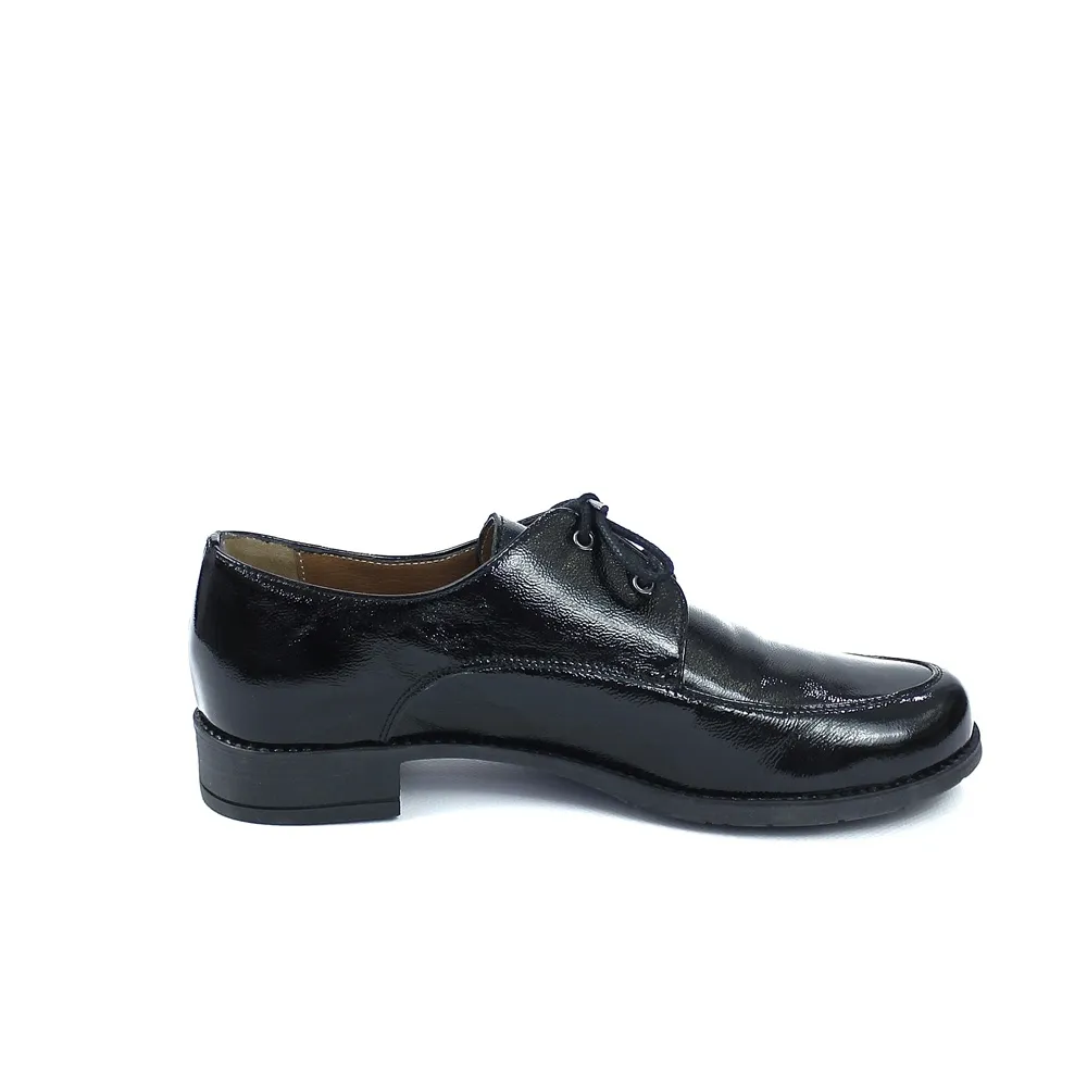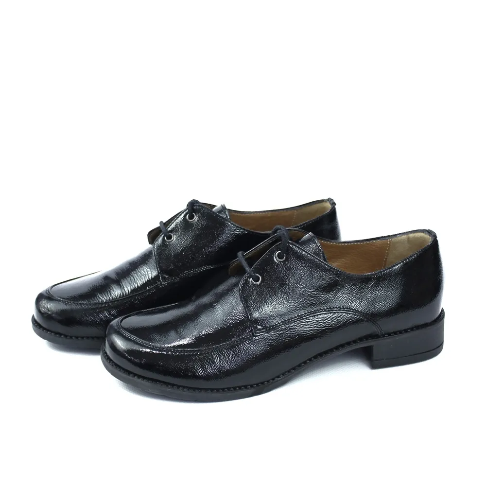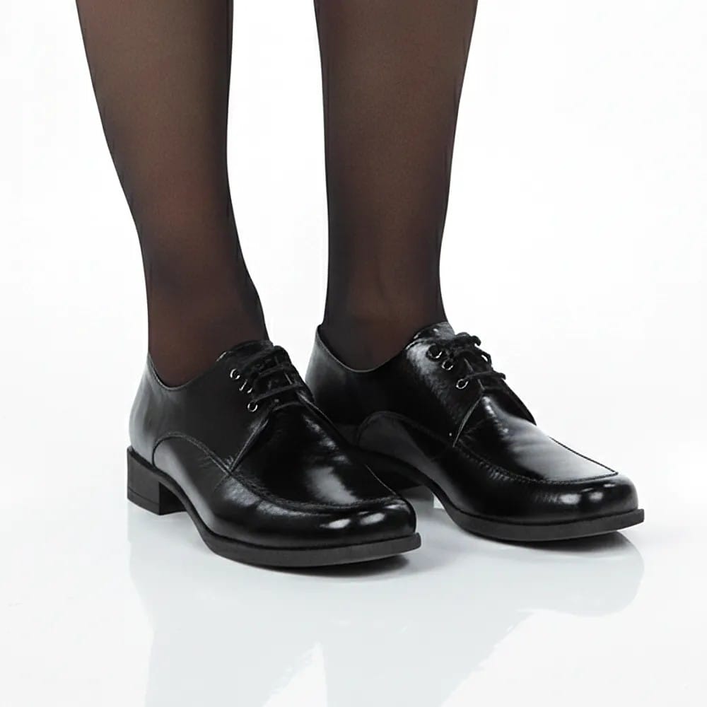 Model Kožna cipela 1250 donosi esenciju menswear stila u žensku garderobu. Riječ je o Derby ili Oxford cipeli koju karakteriše gornjište od visokosjajne lak kože, čime se postiže izuzetno prefinjen i upečatljiv izgled. Ova cipela je idealan izbor za dame koje cijene moćni, androgeni šik.