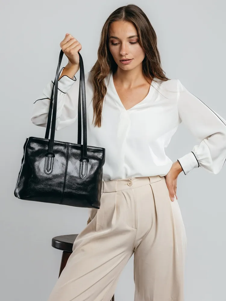 Istražite spoj modernog dizajna i praktičnosti sa ovom ženskom kožnom torbom. Unutrašnjost čine dva odjeljka a dodatni džepovi omogućavaju da lako organizujete svoje stvari, dok elegantan izgled upotpunjava svaku kombinaciju.