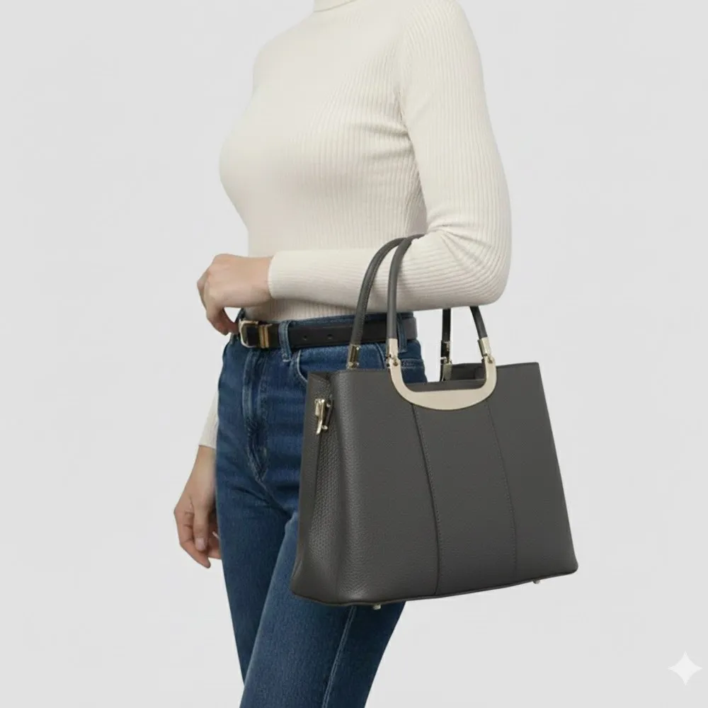 Podignite svoj stil na viši nivo uz torbu koja odiše luksuzom i prefinjenošću. Dizajnirana za ženu koja cijeni kvalitet i želi aksesoar koji nikada ne izlazi iz mode, ovaj model je pravi „statement“ komad u vašem garderoberu.
