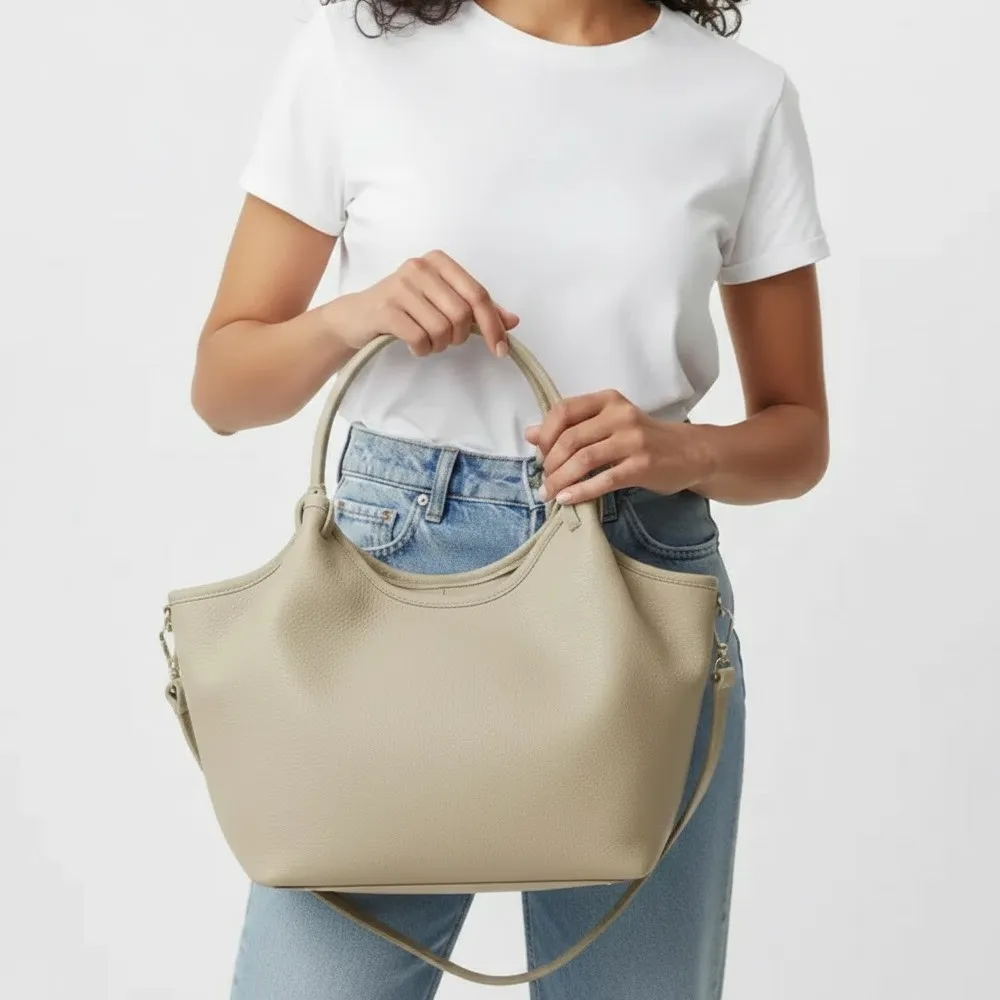 Zahvaljujući svojoj neutralnoj boji, ova torba je pravi „modni kameleon“. Izvrsno se slaže uz kapute boje kamila, ljetne bijele haljine ili stroga poslovna odijela. Idealna je za radni dan koji se nastavlja opuštenom večerom u gradu.
