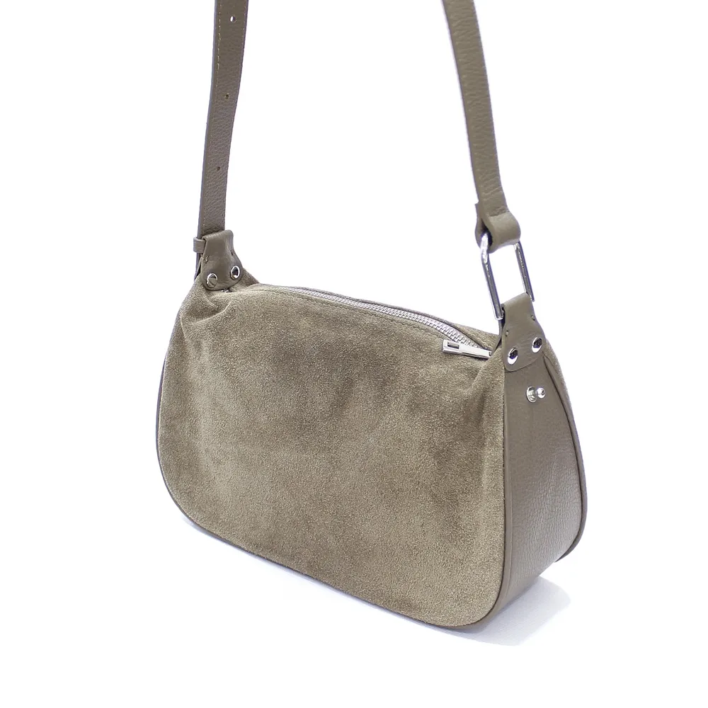 Ova elegantna ženska torba od prirodne brušene kože savršen je izbor za žene koje vole minimalistički dizajn i bezvremensku eleganciju. Izrađena od kvalitetne velur kože, torba ima mekanu, ugodnu teksturu i profinjen izgled koji se lako uklapa uz različite modne stilove.