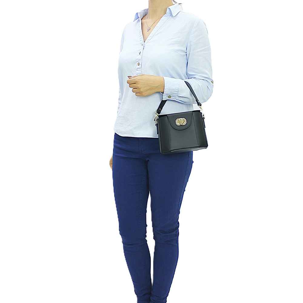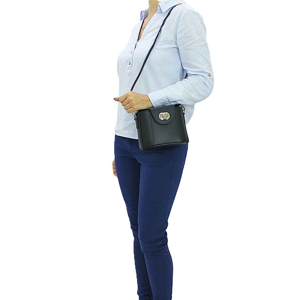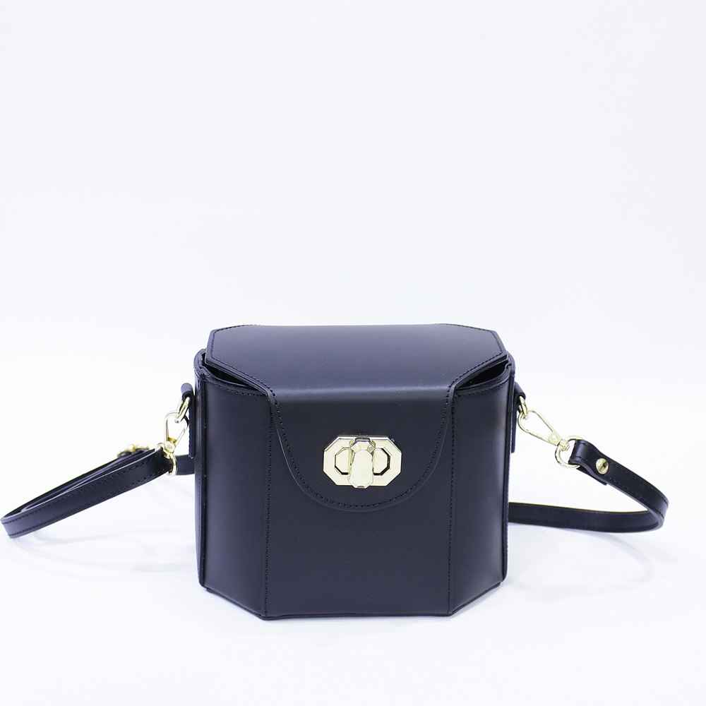 Jedinstveni dizajn: Neobični heksagonalni oblik čini ovu torbu pravim statement komadom koji će privući poglede. Kvalitetna crna koža sa blagim sjajem uparena je sa metalnom kopčom u boji zlata, stvarajući luksuzan kontrast. Iako kompaktna, njen jedinstveni oblik omogućava da u nju spakujete sve osnovne sitnice, od telefona do ruža, dok metalna bravica pruža sigurnost.