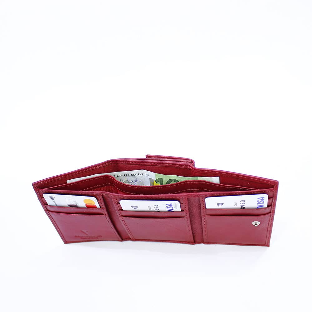 Organizacija: Unutrašnjost je optimizovana za kartice, dokumenta i papirni novac, dok proštepani rubovi osiguravaju čvrstinu konstrukcije.