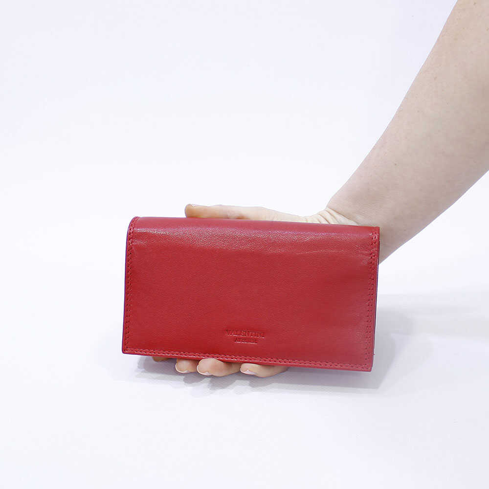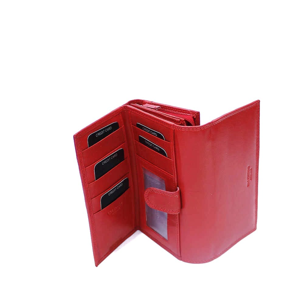 Prostrani ženski novčanik od prirodne kože sa mnoštvom pregrada za kartice, dokumenta i novac. Idealan za poslovne i svakodnevne prilike.