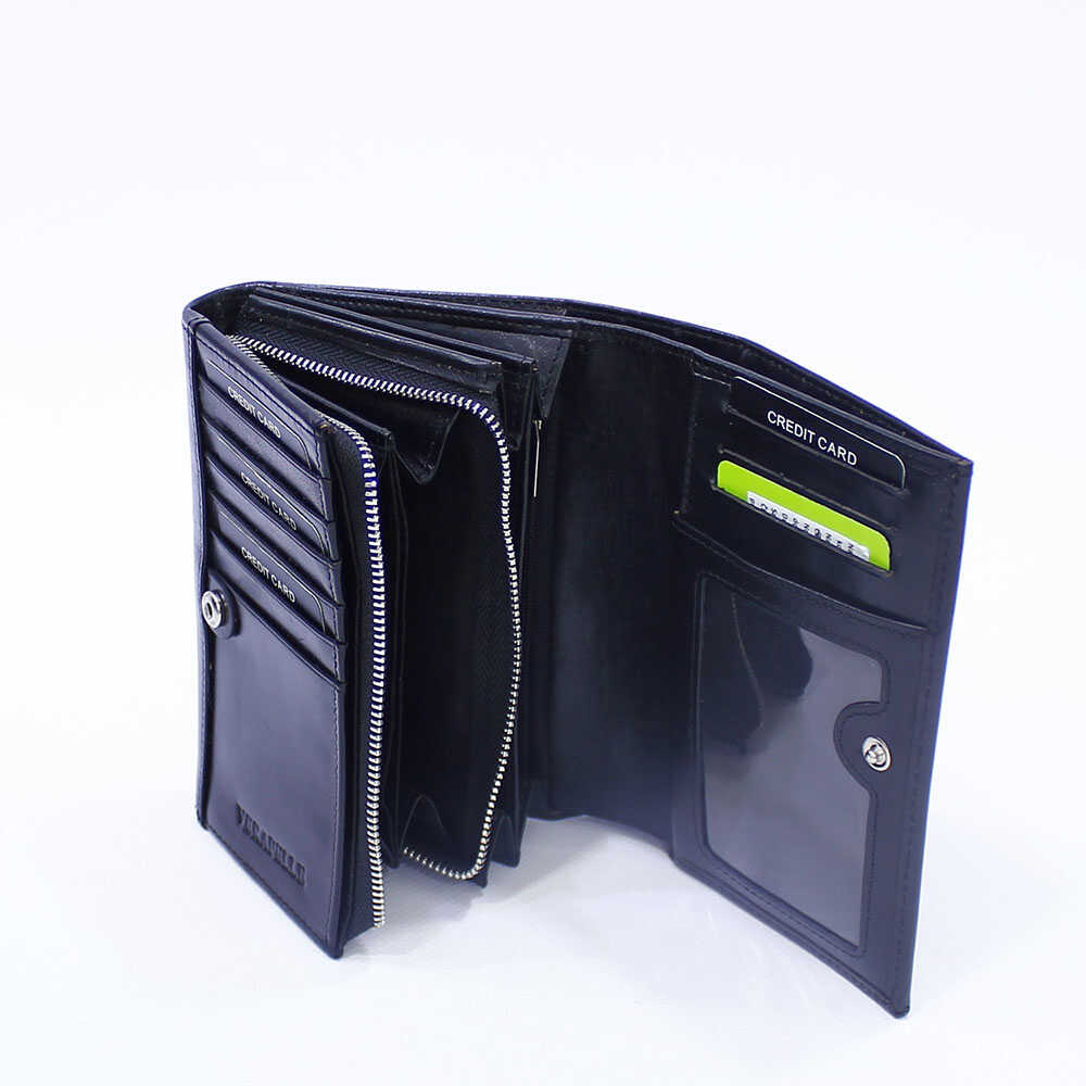 Ovaj kožni ženski novčanik u crnoj boji donosi savršen balans između veličine, funkcionalnosti i modernog izgleda. Idealan za žene koje žele praktičan novčanik sa dovoljno prostora i mjesta za sve što im je potrebno.