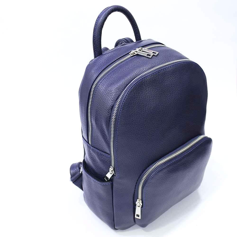 Upotreba srebrnih metalnih elemenata stvara oštar, moderan kontrast sa teget kožom, pružajući rancu svjež i savremen izgled.