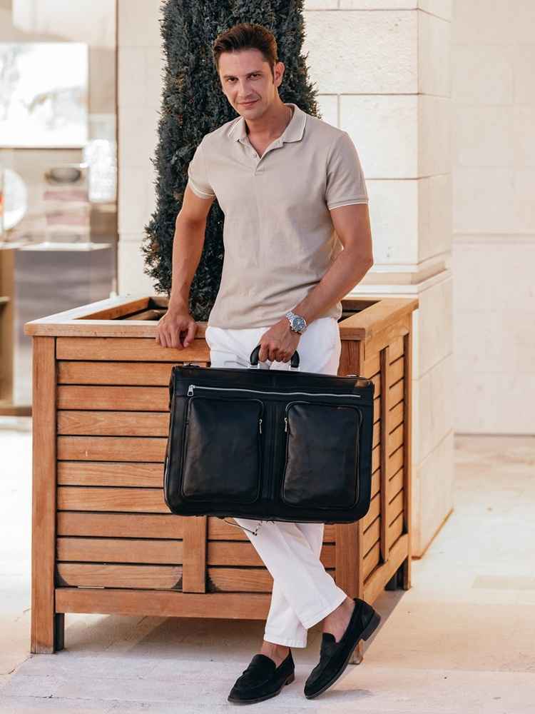 Ručno izrađena u Italiji od visokokvalitetne prirodne kože, kombinuje bezvremensku estetiku sa promišljenim dizajnom.Posebna unutrašnja pregrada omogućava vam da spakujete odijelo ili sako bez gužvanja, dok dodatni odeljci nude dovoljno prostora za obuću, laptop, dokumenta i sve ono što vam je potrebno za putovanje bez stresa.Udobne ručke i uklonjivi kajiš omogućavaju fleksibilnost pri nošenju – bilo da je nosite u ruci, preko ramena ili kao ručni prtljag u avionu.