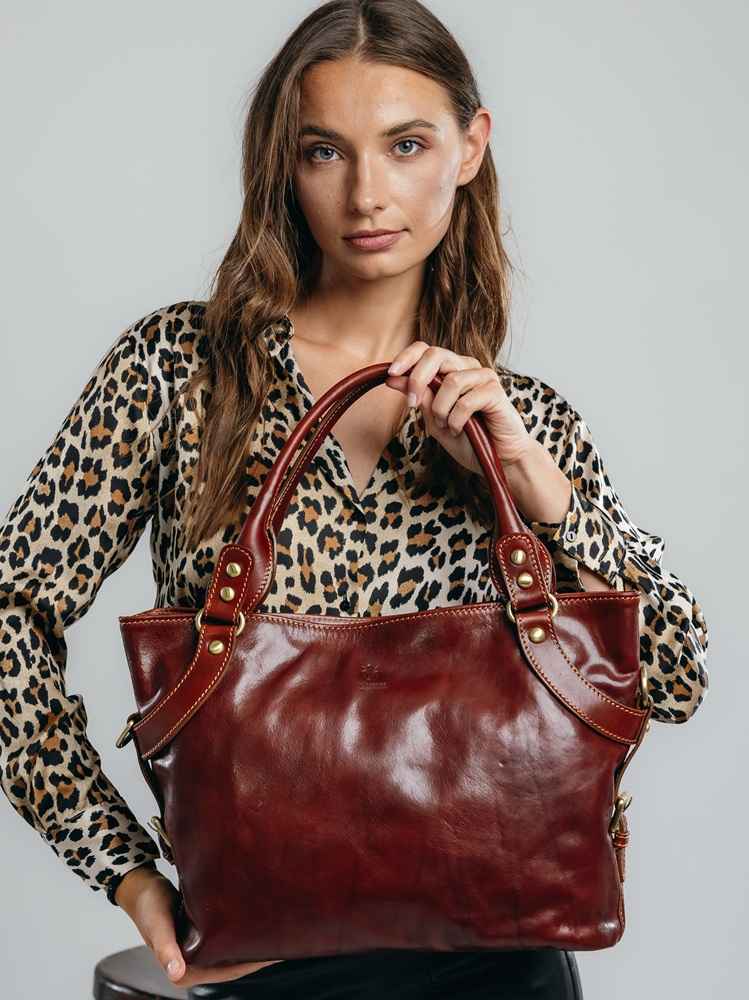 Ova velika kožna tašna je savršen spoj elegancije i praktičnosti. Izrađena od visokokvalitetne kože, pruža izdržljivost i dugotrajnost. Njen sofisticirani dizajn upotpunjen je elegantnim metalnim detaljima koji joj daju dašak luksuza. Unutrašnjost je pažljivo organizovana sa velikom pregradom koja odvaja prostor i brojnim džepovima za Vaše sitnice. Duge ručke omogućuju udobno nošenje u ruci ili preko ramena, čineći je idealnom za poslovne sastanke, putovanja ili svakodnevne obaveze. U nju lako stanu dokumena A4 formata i laptop uređaji, čineći je nezamjenjivim modnim dodatkom za moderne žene koje cijene stil i funkcionalnost.