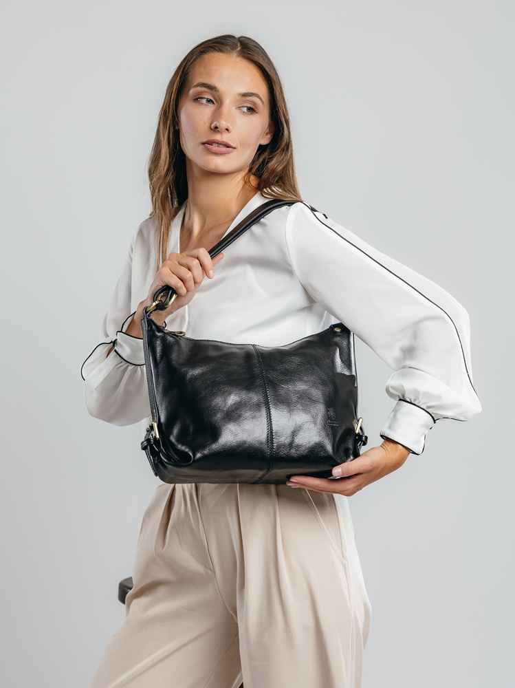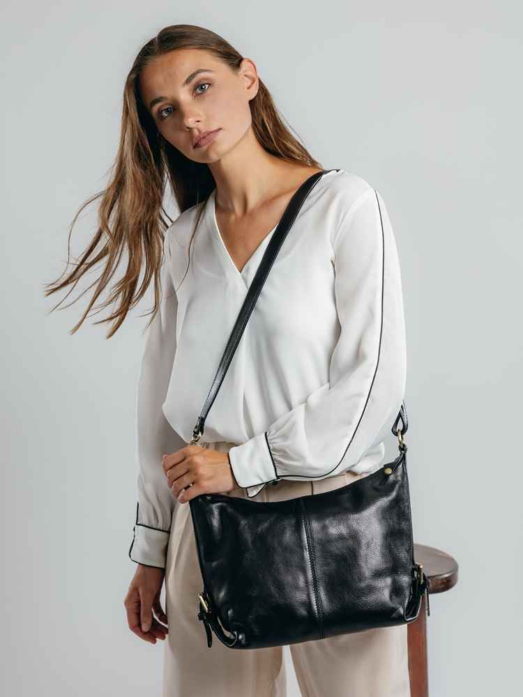 Ova torba od prirodne kože savršen je izbor za žene koje žele da imaju komad koji nikada ne izlazi iz mode. S jednostavnim dizajnom, pruža vrhunski izgled i funkcionalnost. Sadrži više džepova za lakšu organizaciju, dok podešavajući kajiš omogućava udobno nošenje tokom cijelog dana.
